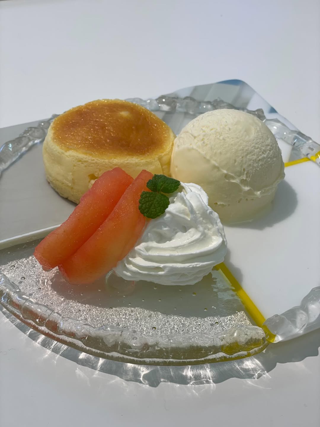 Cheese soufflé on a glass plate